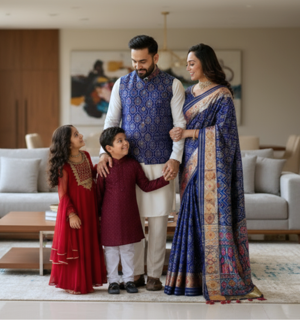 Découvrez nos ensembles traditionnels et modernes pour toute la famille : des combos couple aux duos père-fils, en passant par les tenues pour enfants, chaque pièce est pensée pour sublimer vos moments festifs et vos occasions spéciales. Nos collections célèbrent l’harmonie et la complicité familiale, en alliant élégance, confort et authenticité dans chaque détail.