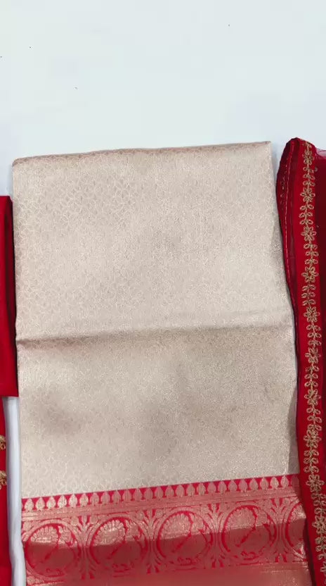 🥰 Lehenga en soie Kanjivaram avec motifs Zari, accompagné d’un chemisier et d’une dupatta Banarasi 🥰